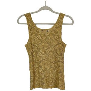Vintage 90s Gold Lace Tank Top Overlay Royalcore Mesh Gemilli Shirt