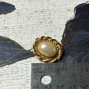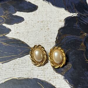 Add a touch of vintage elegance to your jewelry collection with these gorgeous 90s earrings! These earrings feature a gold-plated twisted design adorned with faux cream pearl cabochons. They are post-back earrings for a secure and comfortable fit.