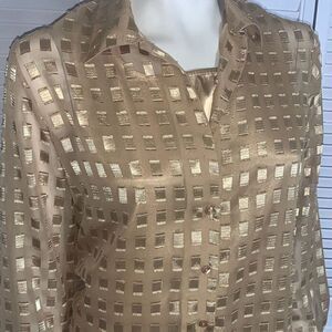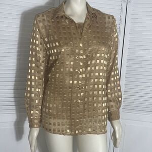 Vintage 90’s Gold Sheer Long Sleeve Button Down Shirt with Matching Gold Sleeveless Top Medium