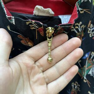This vintage 90s golf jacket by Line Up is the perfect addition to any casual wardrobe. Made from softshell fabric with a geometric pattern in multicolor, this windbreaker features a full zip closure and accents of zipper. The jacket is lined with nylon and is available in size M for men.