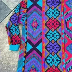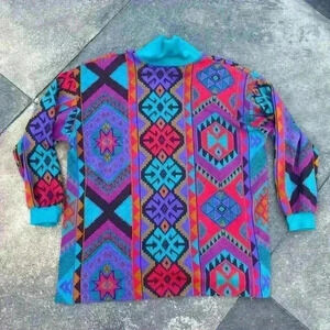 Vintage 90s Graff XL Mock Neck Quarter Sleeve Aztec/Tribal Print Multicolor