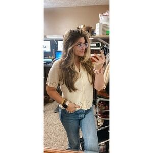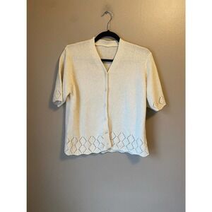 Vintage 90s Grandma Cottagecore Knit Button Front Short Sleeve Button Front Top
