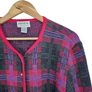 Vintage 90s Grandmacore Boiled Wool Sweater Cardigan Sz Large Red Green Holidays
