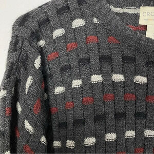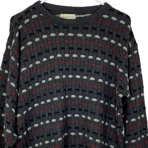 Vintage 90s Grandpa Sweater Oversized Pullover Mens Size Medium Gray Cream Red