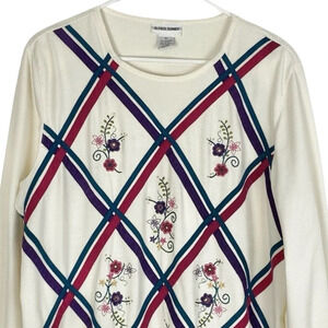 Vintage 90s Granny Top Sweatshirt Tunic Shirt Womens XL Embroidered Floral