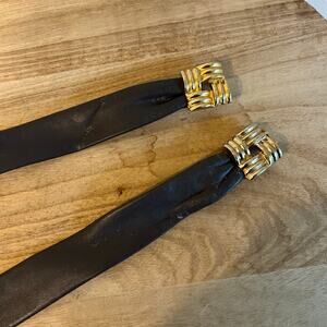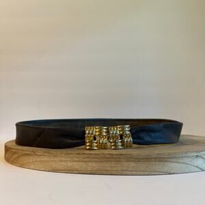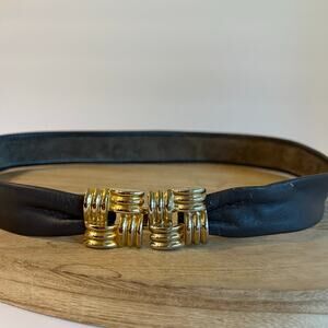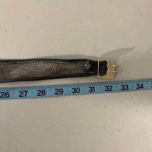 Vintage 90s Gray Genuine Leather Golden Chunky Buckle Belt Size Small/Medium