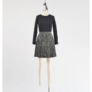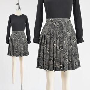 Vintage 90s Gray Pleated Floral and Paisley Academia Schoolgirl Mini Skirt M