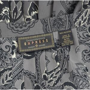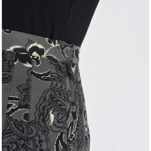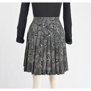 Vintage 1990's gray floral and paisley print skirt. High waisted. Pleated tennis style. Mini length. Side zipper. Button waist. Unlined.