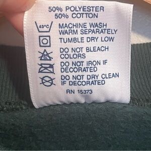 This sweatshirt is in almost new condition! The inner fleece lining is still soft - it's barely been worn. The only sign of use is there are a few specs on the large front "G" as shown in close up. Otherwise, excellent condition!