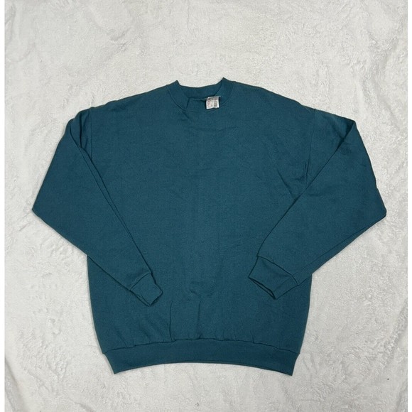 Vintage 90s Green Blank Sweatshirt Crewneck Faded Heavyweight Men s Size Large. Brand new with tags. Appears to have a snag by left arm seam. Please see pictures for condition and measurements