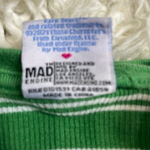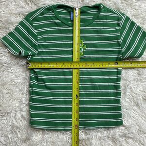 This vintage 90s Green Striped Care Bears Good Luck Bear Ribbed T-Shirt in size Medium is a nostalgic addition to any woman's wardrobe. Made by the iconic brand Care Bears, this short sleeve crew neck shirt features a classic striped design in a vibrant green color. Perfect for fans of the 90s era, this shirt exudes a retro charm that is sure to make a statement. With its medium size and regular fit, this t-shirt is a versatile piece that can be styled for casual outings or lounging in comfort.