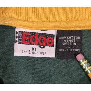 Show off your love for the Green Bay Packers with this vintage 90s Greenbay Packers The Edge Polo shirt. This officially licensed shirt features a green color with a yellow collar and is made of high-quality materials. It's perfect for both men and women who want to support their favorite team during the regular season. This shirt is a size XL and has the iconic team logo on the front. It's a must-have for any fan of the NFL and the Green Bay Packers. Get yours today and wear it to the next game or as a casual outfit. This shirt is perfect for anyone who wants to show off their love for the Green Bay Packers in a stylish and comfortable way.