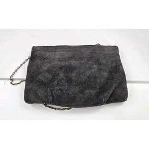 Vintage 90s Grey Suede Hinged Frame Clutch Oyster Clam Purse Handbag Chain Strap