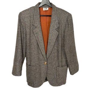 Vintage 90s Grey Wool Blend Micro Herringbone Pattern Single Button Blazer Medium