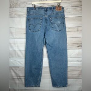 Eclectic Grandpa Vintage Y2K 90’s Levi's baggy blue jeans offer a timeless denim look with a light to medium wash. The relaxed/baggy cut and subtle distressing adds a touch of character. Perfect for everyday wear, these jeans combine style and comfort effortlessly.