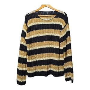 Vintage 90s Grunge Striped Black and Tan Sweater