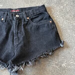 Vintage 90s Guess High Waist Cut Off Denim Jean Shorts Size 26 Black USA 2"