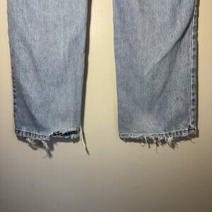 Nineties, Light Wash, Acid Wash, Mom Jeans, Dad Jeans, Straight Leg, Relaxed Fit, High Rise, High Waisted, 100% Cotton, Non-Stretch, Grunge, Y2K Style, Designer Denim, Raw Hem, Distressed, True Vintage.