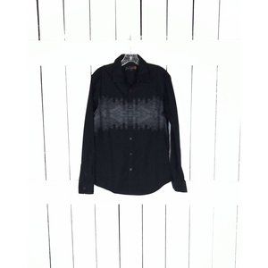 Vintage 90s Guess black/grey long sleeve button down shirt/mens black fitted Guess shirt/small