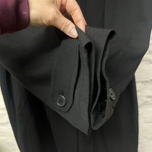 Vintage 90s HENRI BENDEL NY Long Black Jacket Trench Coat Made in Italy Overcoat. Medium weight fabric - smooth/soft woven wool, not fuzzy or itchy.