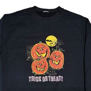 Vintage 90s Halloween Jack-O-Lantern Black Crewneck Sweatshirt Women's Medium