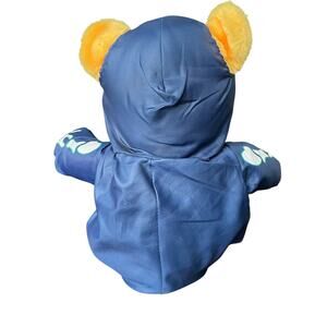 Vintage 90s Halloween Nylon Skeleton Bear Plush Costume Blue Stuffed Animal Toy