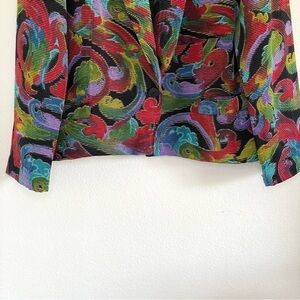 This bold multicolor blazer features a funky abstract print with unique ribbing texture, and a retro padded shoulder that is sure to make this a standout piece.