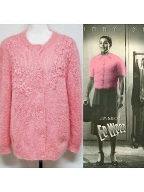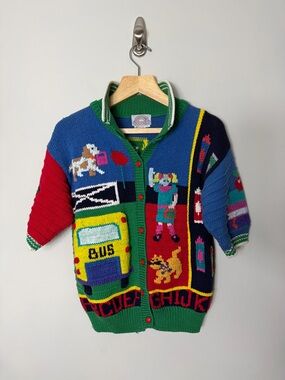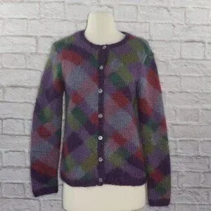 Vintage 90s Hand Knit Mohair Cardigan Sweater