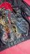 Originally a Burk’s Bay black leather bomber with a Kelly Moore Paints logo, this jacket has been reimagined with a bold, traditional Japanese art-inspired design featuring a tiger, red sun, and flames on the back. Two side pockets and a classic cut make it wearable art you’ll reach for again and again.