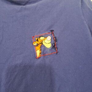 This vintage 1990s T-shirt features Tigger from Disney's Winnie the Pooh in an embroidered graphic. The classic purple cotton fabric and relaxed fit exude a nostalgic charm, perfect for collectors or fans of retro Disney apparel.