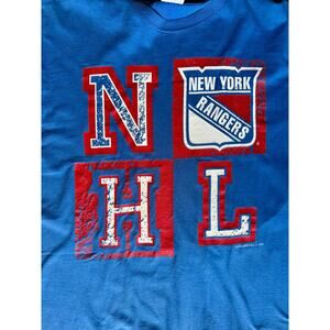 Vintage 90’s Hanes NHL New York Rangers Blue Red Short Sleeve Tee Large T Shirt