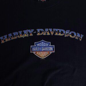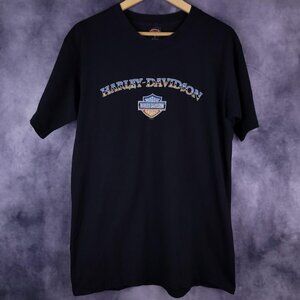 Vintage 90s Harley Davidson Peoria, Illinois biker motorcycle USA flag shirt