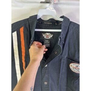 Vintage 90s Harley Davidson Spell Out Mechanics Cut Off Button Shirt