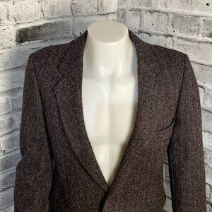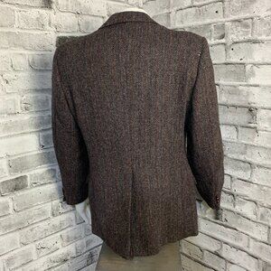 Vintage 90s Harris Tweed Blazer Brown Herringbone Wool Two Button Sport Coat