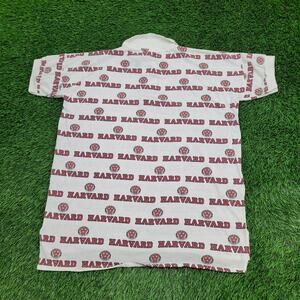 Vintage 90s Harvard University Polo Shirt 2XL 25x31 White Red AOP Collegiate style Harvard crest