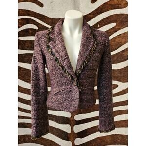 Vintage 90s Haute Couture Enrico Ferezi Italy Purple Knit Textured Blazer Sz 2