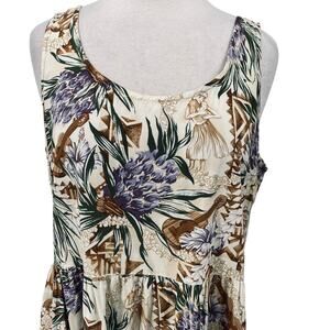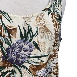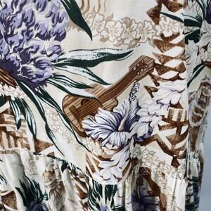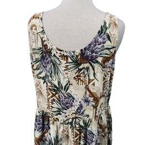 Keywords: empire waist flowy aline a-line cute Hawaii tropical island cruise resort resortwear hot weather summer spring boho bohemian hippie relaxed fit comfy comfortable lightweight sundress Hula dancer coverup beachy coastal hibiscus floral lei luau flowers neutral cream purple green brown unique rare casual dress 1990s nineties y2k 00s 2000s