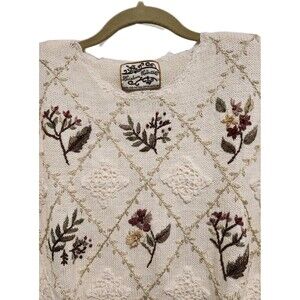 Vintage 90s Heirloom Collectibles Floral Embroidered Sweater Size Medium