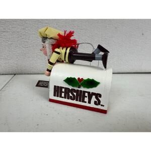Add nostalgic holiday charm with this vintage 1990s Hershey’s Christmas ornament by Kurt S. Adler featuring Santa dressed as a baker, perched atop a festive mailbox. A whimsical piece of Hershey's holiday history!