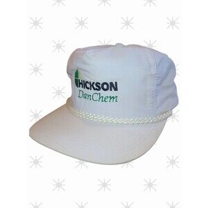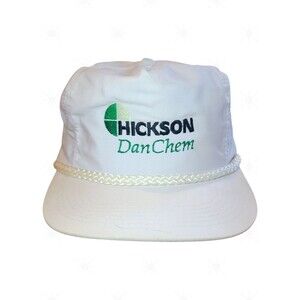 This vintage Hickson DanChem snapback hat cap is a must-have for any casual occasion. The adjustable size and green and white rope design give it a unique look. This original 1990s cap is perfect for anyone who wants to add a touch of vintage style to their wardrobe. It's a great addition to any collection and is sure to turn heads. The cap is not modified and has a snapback adjustment type. It's a high-quality item that will last for years to come.