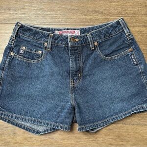 Vintage 90s High Rise SILVER JEANS Dark Denim Shorts Size 31 With Side Vents