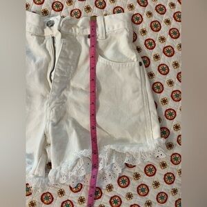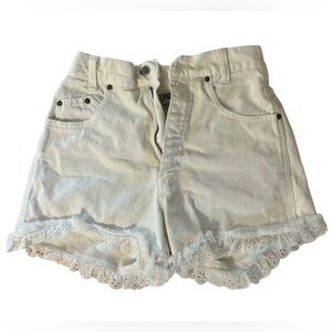 Vintage 90s High Waist Distressed Eyelet Ruffle White Shorts Michael G Size 5