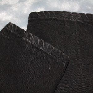 Classic black denim wash high-waist mom-jean. Solid sturdy denim with tapered leg. Excellent condition with minimal fading of black wash.