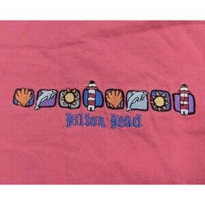 Vintage 90s Hilton Head Island Souvenir Tee Women's M Embroidered Pink