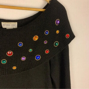 Vintage 90s Holiday Victoria Jones Black Beaded Sweater