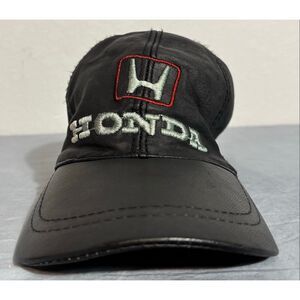 Vintage 90s Honda Leather Cap Authentic Motorsport Racing Biker Black Hat FLAWS