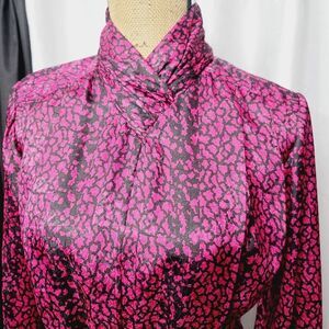 Vintage 90s Hot Pink Barbiecore Abstract Print Long Sleeve Midi Dress