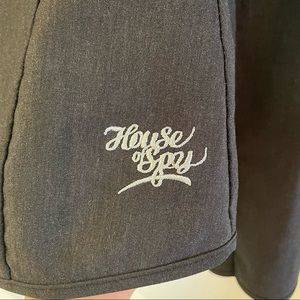 Gray vintage 90s House of Spy boatneck shirt with stretchy ribbed elbows. Fabric content tag is deteriorated, but the rest is in excellent condition.