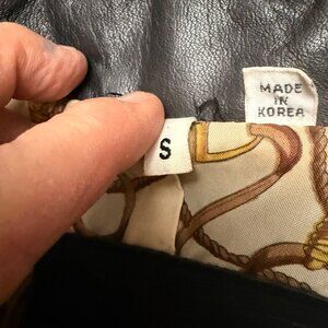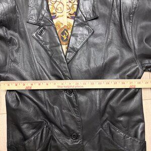 This Vintage Leather trench coat features a sleek leather exterior and a decorative patterned lining. Designed for a timeless, professional style with durable craftsmanship.