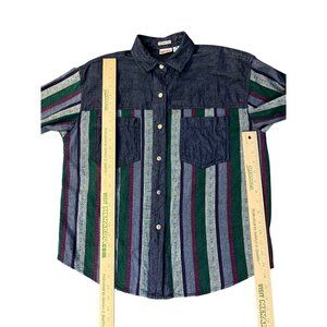 Vintage 90s Huntington Ridge Denim Shirt Womens M 1993 Striped Button Up